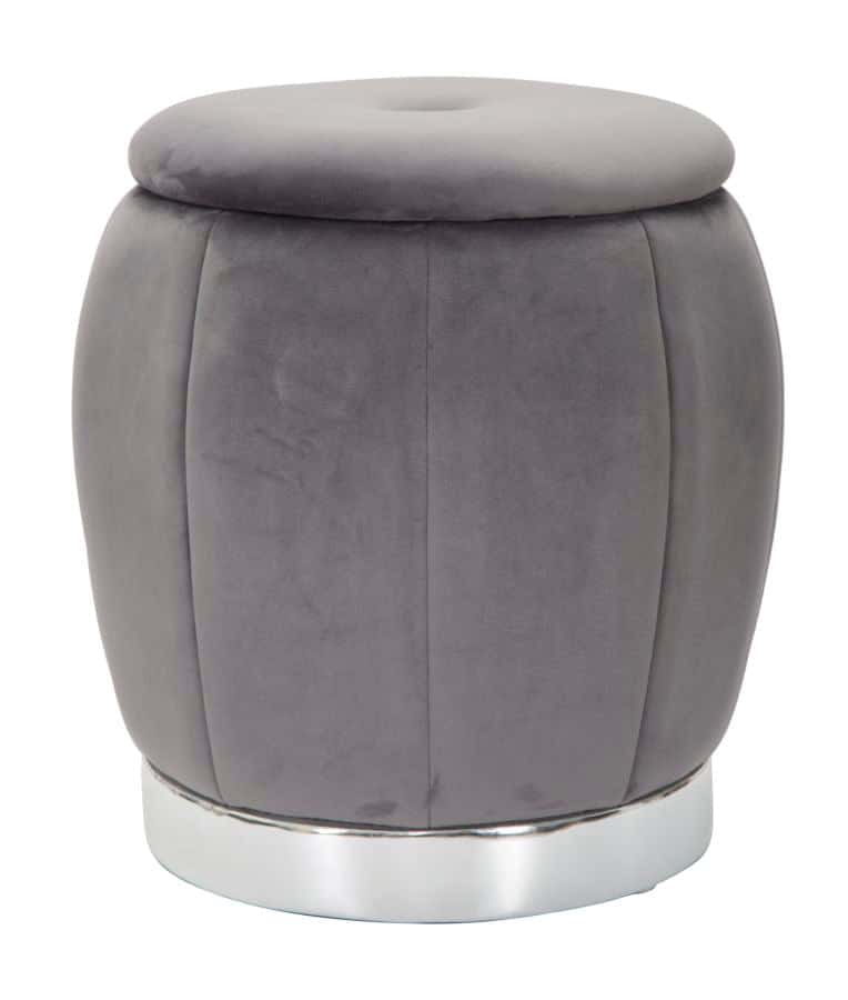 Elegant puf i grå velour med opbevaring Skab en følelse af glamour i dit hjem med denne elegante puf fra Glam -serien. Puffen er fremstillet af fyrretræ, skum  og polyester, og udstråler både kvalitet og godt håndværk. Puffen er betrukket med blød grå ve
